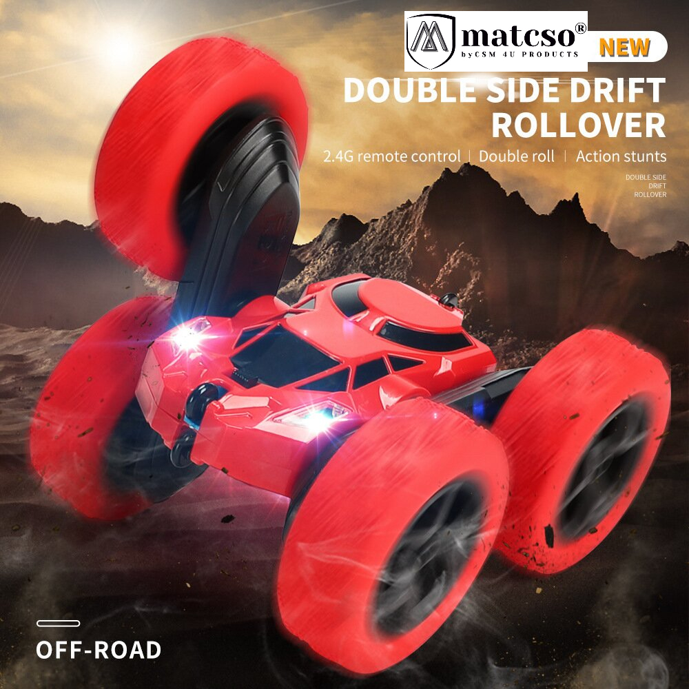 Masinuta de Cascadorie RC Pentru Copii, Matcso® 828A, Fata Dubla, Tractiune Integrala 4x4, Rotatie 360°, Rasturnari De 180 Grade, Viteza Mare, Lumini LED, Baterie Reincarcabila, Raza de Actiune 50 M, Rosu