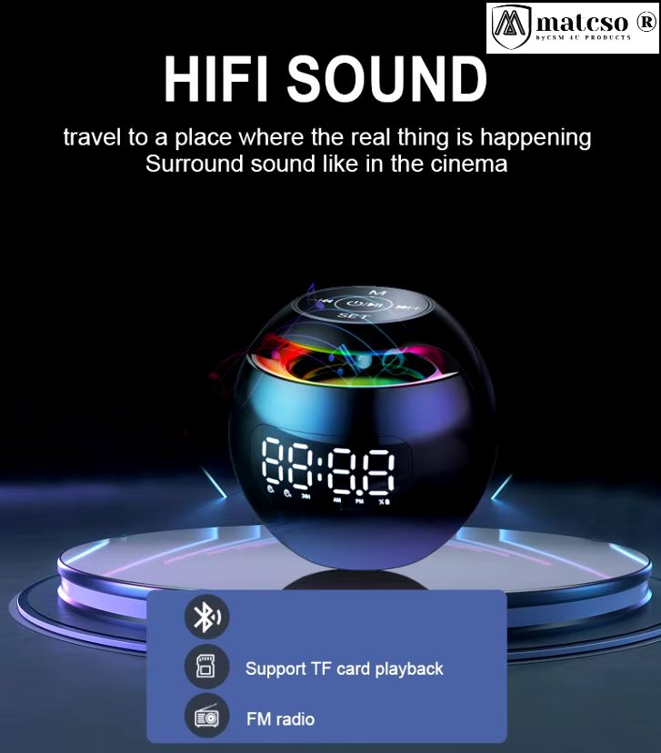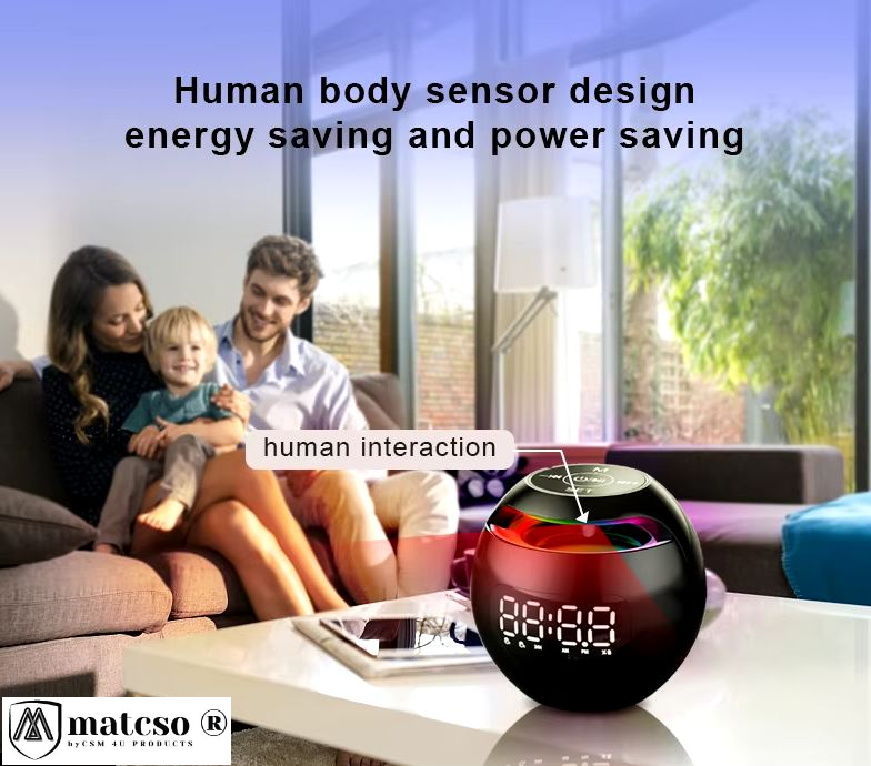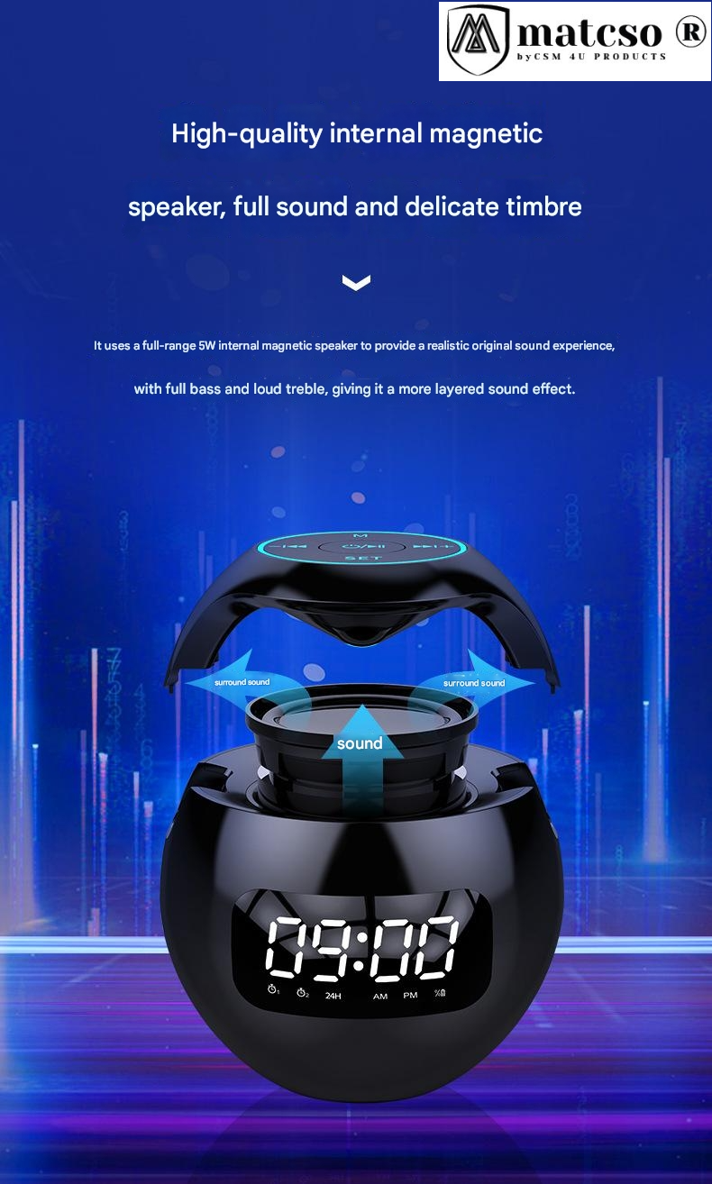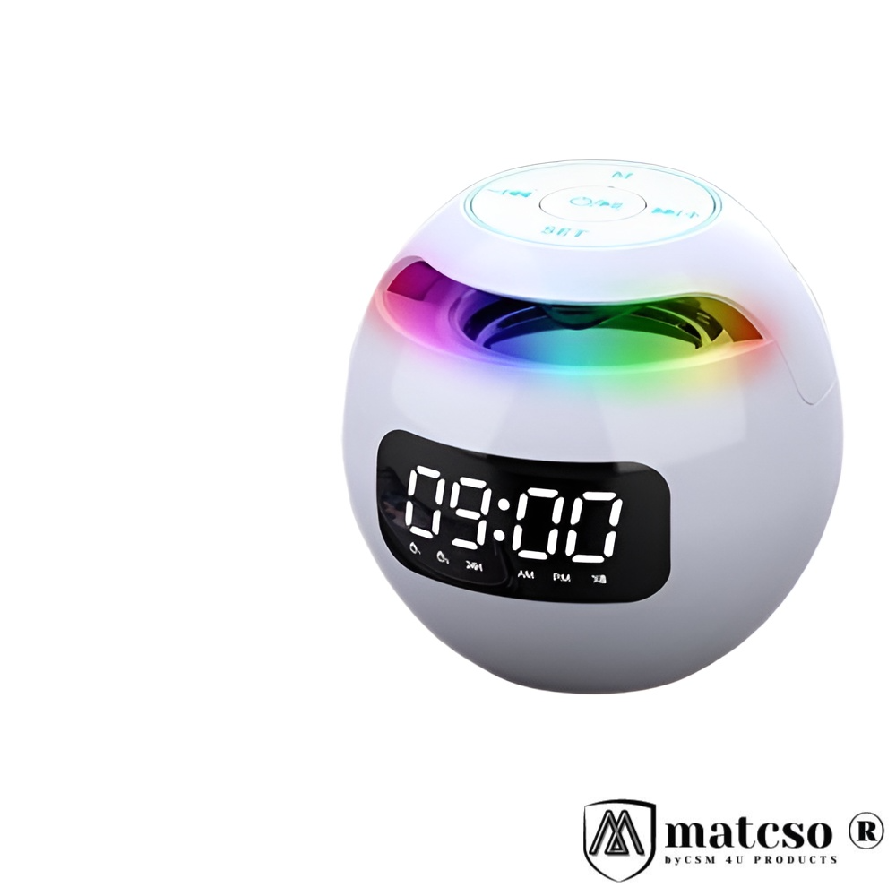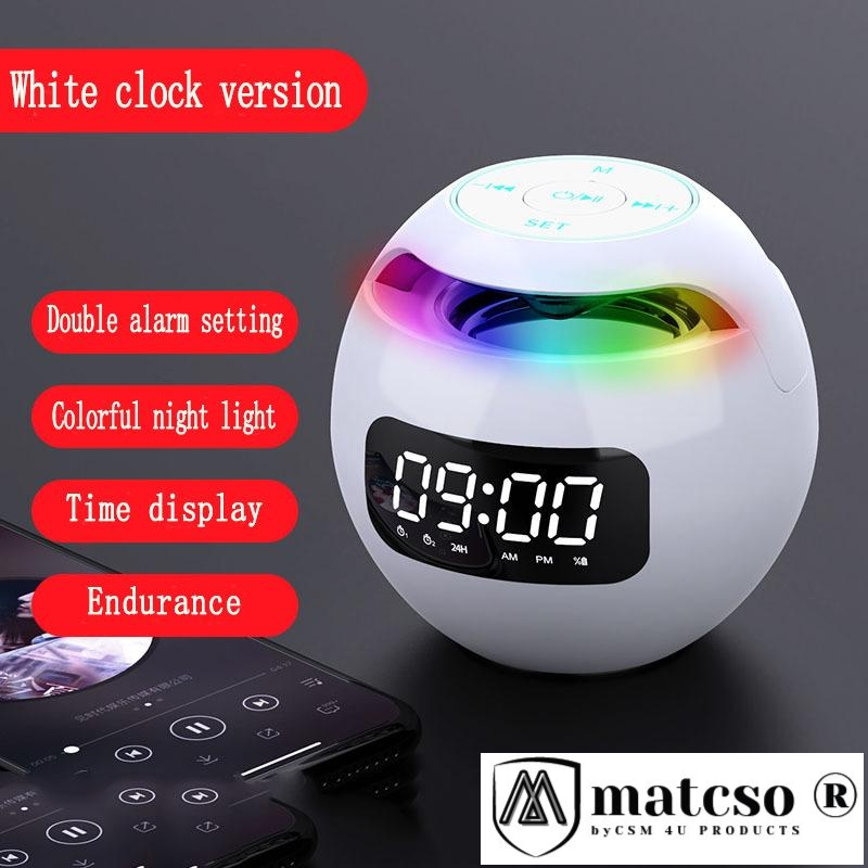 Boxa Portabila Wireless cu Ceas Desteptator Digital si Radio, matcso by CSM 4U PRODUCTS®, Design modern, Alarma dubla, Difuzor, Bluetooth, Slot pentru card, Lumina LED, Alb